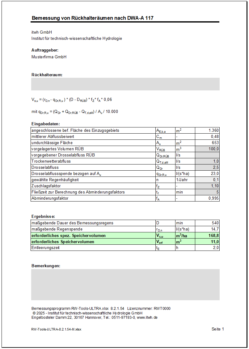 Wer sich nur für eine kleine Lösung in Zusammenhang mit dem DWA-Arbeitsblatt 138-1 interessiert, für den bieten wir das Produkt RW-Tools-A138.xlsx und für wen die DIN1986-100 interessant ist, bieten wir das die RW-Tools-DIN1986.xlsx an.